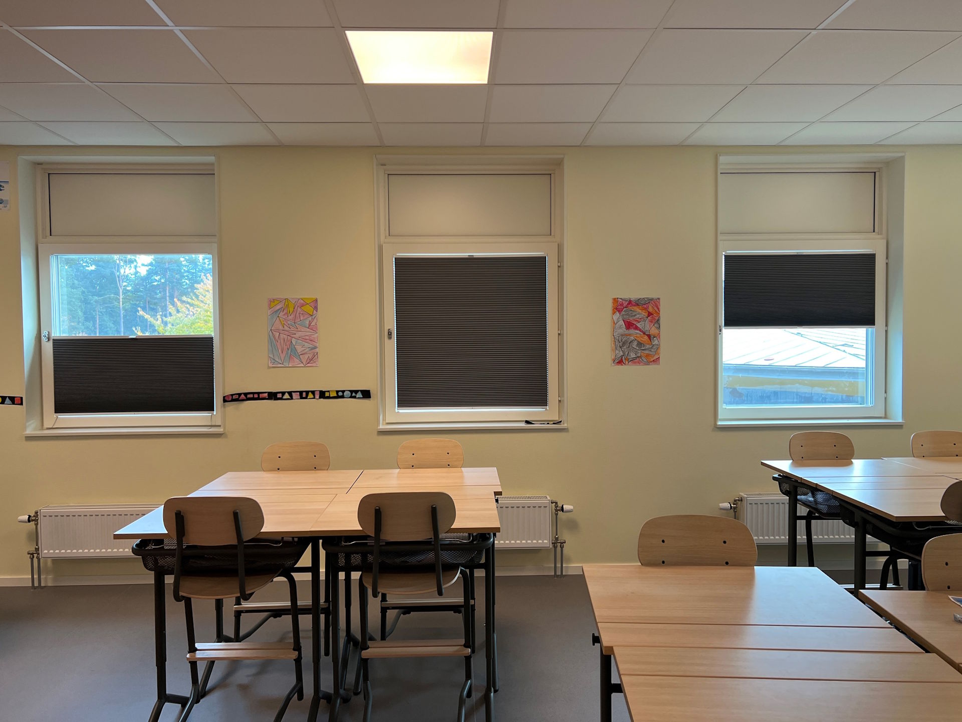 Plisségardinerna kan monteras i de flesta fönster och ger ett ljust och lätt intryck när den är fördragen.